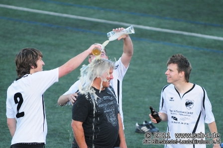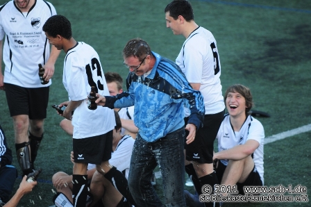 Nach 92 Minuten war es dann Gewissheit: Die SG SC Blieskastel-Lautzkirchen / SV Kirkel gewinnt mit 2:1 gegen die SG Hassel und sichert sich damit frühzeitig den ersehnten Meistertitel. Dass es in der Folge eine obligatorische Duschen für die Trainer Simon Kiefer, Walter Reinhardt und Hans Brengel gab, muss an dieser Stelle nicht sonderlich erwähnt werden und so wurde der Titel bei sommerlichen Temperaturen auf dem SC-Kunstrasen ausgekostet. Es war geschafft!