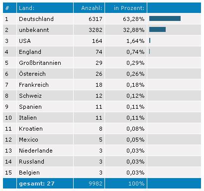 Verteilung der Besucher auf die Herkunftsländer (nach Sprachen im Browser)