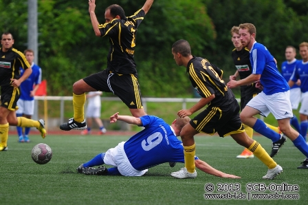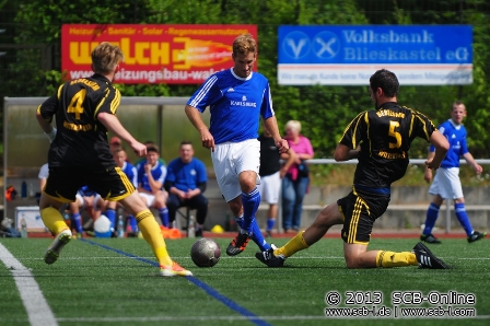In Blickweiler trugen sich beim Duell der Mitfavoriten zunächst zwei Rückkehrer in die Torschützenliste ein: Patrick Meyer, der vom Verbandsligisten aus Ballweiler-Wecklingen zum SVB zurückwechselte brachte seine Elf nach 10 Minuten mit 1:0 in Führung. Die SVB-Führung hatte lange Bestand, kurz vor dem Wechsel dann aber die Antwort der Sportfreunde aus Walsheim: Stefan Hohnsbein, der aus Altheim zu den Sportfreunden zurück kam traf in der 44. Minute zum 1:1-Pausenstand. Die Partie blieb spannend, ehe ein alter Bekannter die Partie entschied: Melori Bigvava traf nach 65 Minuten zur erneuten SVB-Führung. Bis zum Spielende blieb es spannend, der SVB brachte die Führung aber am Ende ins Ziel.