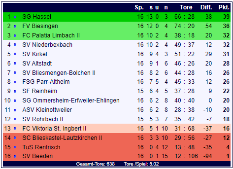 | SG Hassel | | | | SV Bliesmengen-Bolchen II |