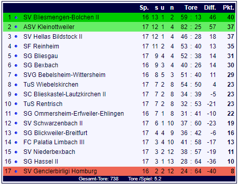 | SV Bliesmengen-Bolchen II | | | | FC Palatia Limbach III |