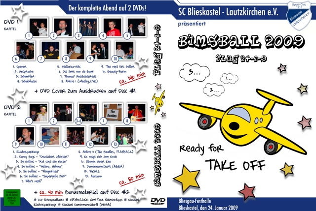 Der Bimsball 2009 war beim SC Blieskastel-Lautzkirchen der erwartete grandiose Auftakt in das Jahr 2009. jetzt gibt es das Highlight auf DVD und wer die DVDs der Vorjahre kennt, der wird wissen, dass es sich allemal lohnt, sich den Bimsball nochmals in heimische Wohnzimmer zu holen. Darum heißt es für alle Interessierten. Jetzt bestellen und das Bimsball-Feeling nocheinmal erleben: