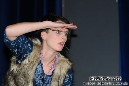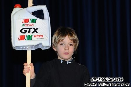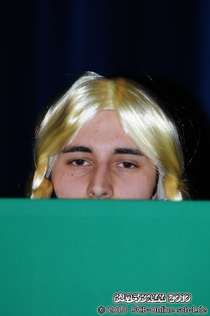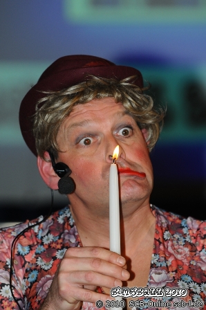 Nun ging es nach dem offiziellen Teil los mit dem Bimsball 2010: Aufgelockert wurde die Show neben den Moderationen von Matthias Schößer und Thomas Kiefer durch Werbespots, in denen Jugendspieler des SC Blieskastel-Lautzkirchen nicht ganz ernst zu nehmende Produkte präsentierten. Über den gesamten Abend hinweg sorgten die SC-Jugendspieler Cedric Kiefer, Robin Klein, Julia Steinmann und Marvin Bank sowie Marius Schwarz, Tim Collet und Celine Fremgen für zahllose Lacher beim Publikum und stellten somit schon in jungen Jahren ihr Entertainment-Talent eindrucksvoll unter Beweis. Auch mit der satirischen Version des Märchens Rotkäppchen vom bayrischen Kabarettisten Willi Astor unter dem verheißungsvollen Namen Radkäppchen überzeugten die Jugendkicker mit einem wahren Feuerwerk an Wortspielen und sorgten damit beim Publikum für einen Lacher nach dem Anderen. „Ein bisschen Kritik“ übte dann der SC-Vorsitzende Günter Pusse mit einem humoristischen Gesangsbeitrag.