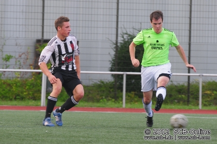 Zum Kerwespiel empfing der SC Blieskastel-Lautzkirchen den TuS Ommersheim an der Florianstraße und die rund 80 Fußballfans sahen zunächst eine Partie auf sehr überschaubarem Niveau mit nur wenigen Höhepunkten. Viele Fehlpässe auf beiden Seiten hemmten den Spielfluss und so dauerte es einige Zeit, ehe es erste Torraumszenen zu sehen gab. Ein Schwarz-Kopfball nach 12 Minuten war das erste Lebenszeichen der SC-Offensive. In der Folge schlichen sich einige Ungereimtheiten in der SC-Defensive ein, die die Gäste zu Chancen kommen ließen: Tobias Jene scheiterte nach 19 Minuten an Harder im SC-Tor, ehe Harder im Duell mit Jene nur Minuten später erneut zu einer Glanztat gezwungen war. Auch Johannes Ruffing konnte den Ball nicht im SC-Tor unterbringen. Auf der anderen Seite profitierte Benjamin Schwarz von einem Aussetzer in der TuS-Defensive, konnte die Kugel am nicht im Tor unterbringen. Erst mit dem Pausenpfiff gab es eine weitere Großchance als Hubert Gärlipp den Ball per Kopf nun an den Pfosten setzte. So wurden in einem Spiel mit nur wenigen Höhepunkten mit einem torlosen Remis die Seiten gewechselt.