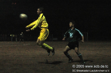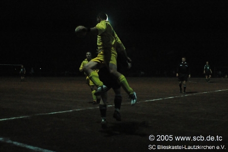 Im Gegensatz zum letzten Aufeinandertreffen, das aufgrund sintflutartiger Regenfälle abgebrochen wurde, spielte der SCB heute wesentlich besser mit. Die erste Chance hatten jedoch die Gastgeber und so musste sich Dirk Hussong bereits nach 45 Sekunden das erste Mal strecken. Danach gelang es dem SC den Ball laufen zu lassen, was folglich zu der einen oder anderen Möglichkeit führte. Auch nach knapp einer halben Stunde war die Partie weiterhin ausgeglichen, Blieskastel mit mehr Spielanteilen, Rohrbach schaltete nach Ballgewinn sofort auf Angriff um. Zuerst jubeln durfte der Gast aus Blieskastel: Peter Pusse setzte sich über die rechte Seite durch, den Schuss von Sven Sandmeyer konnte der Torwart nicht über die Latte lenken, Maik schaltete am schnellsten und drückte den Ball im zweiten Versuch über die Linie.