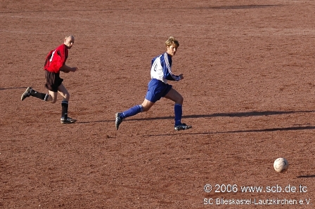 Hälfte zwei startete mit der schon standardmäßig schwachen Viertelstunde des SCB, doch im Gegensatz zu den Spielen in Bierbach und Rentrisch überstand man die bis dato stärkste Phase der Gastgeber ohne Gegentor. Mittlerweile war auch Marc Schaber für den angeschlagenen Schulle im Spiel und kam somit zu seinem ersten Einsatz in dieser Saison. Ab der 60. Minute ging es mit dem Spiel der Gäste wieder bergauf und man erarbeitete sich ein leichtes Übergewicht. Da es in dieser Phase allerdings keine Highlights zu sehen gab, entschloss sich der Schiedsrichter das Wegtragen eines Jugendtores anzuordnen, was nicht nur die Zuschauer zum Schmunzeln brachte. Danach ging es mit Fußball weiter: Wieder ein schöner Pass von Djabba, diesmal hieß der Adressat Peter Pusse, doch diesem sprang der Ball vom Fuß, sodass der TuS-Schlussmann leichtes Spiel hatte. Auf der Gegenseite dann die Kopie dieser Szene: Ormesheims Zehner war durch, legte sich aber im entscheidenden Moment den Ball zu weit vor. 0:2 oder 1:1? Das war nun die Frage, die dem Spiel die nötige Spannung gab. Blieskastel war bei seinen Angriffen oft zu verspielt und kam daher nicht oft zum Abschluss. Fünf Minuten vor dem Abpfiff erlöste Daniel Bartmann, der ein gutes Spiel machte, die SC-Anhänger und ging danach mit verdientem Applaus für Oliver Reitnauer von Platz. Ebenso war Andreas Stutz mittlerweile im Spiel, der kurz darauf wie alle SC-Spieler den Abpfiff umjubelte.