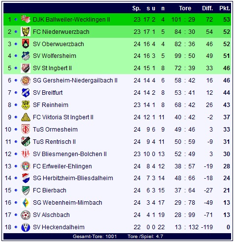 Durch die Punkte vom grünen Tisch bessern die Sportfreunde ihr Puntkekonto bei einem Spiel weniger als die Konkurrenz auf 43 Zähler auf und könnten durch einen Sieg im Nachholspiel bis auf fünf Zähler an den SV Wolfersheim auf Rang vier heranrücken, der nach jetzigem Stand ein Relegationsspiel um den Bezirksliga-Aufstieg gegen den Tabellenvierten der Kreisliga A Saarpfalz der Spielvereinigung Einöd-Ingweiler II absolvieren müsste.