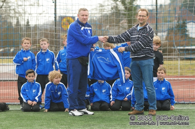 Physiotherapie Thomas Hurth in Blieskastel (Telefon: 06842 / 7060750) die Trainingsanzüge offiziell an die F-Jugend des SC.