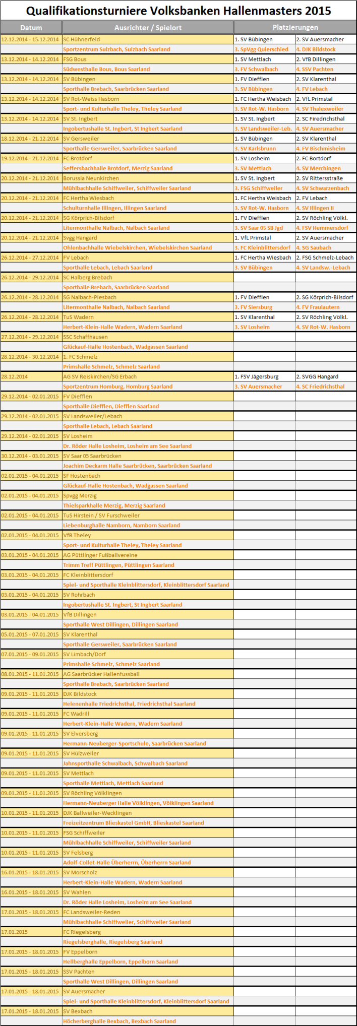 Natürlich wurde damit auch die Qualifikationstabelle mächtig durcheinander gewirbelt: Der FV Diefflen führt jetzt vor dem FC Hertha Wiesbach und dem SV Bübingen, im alten Jahr stehen aber noch vier Entscheidungen aus.