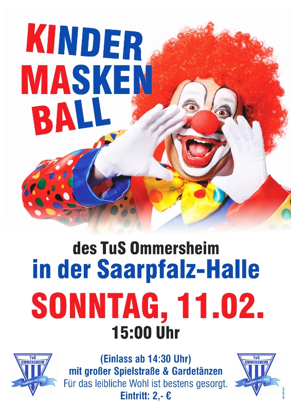 Die Vereine im Bliestal engagieren sich traditionell auch Abseits des Fußballplatzes vorbildlich. So auch der TuS Ommersheim, der auch in diesem Jahr wieder seinen traditionellen Kindermaskenball veranstaltet: Auch in diesem Jahr findet an Faschingssonntag, den 11. Februar 2018, der traditionelle Kindermaskenball des TuS Ommersheim statt. "Wie in den Jahren zuvor steht für Kinder und Jugendliche eine große Spielstraße bereit und wer alle Stationen gemeistert hat, erhält natürlich ein kleines süßes Dankeschön. Das traditionelle Tauziehen, eine große Polonaise und weitere Spiele stehen natürlich auch auf dem Programm und garantieren gute Stimmung. Abgerundet wird der bunte Nachmittag der TuS-Kinderfaasenacht durch zahlreiche Gardetänze, Aufführungen und Stimmungsmusik. Das Programm startet um 15:00 Uhr in der Saarpfalz-Halle in Ommersheim, Einlass ab 14:30 Uhr. Für das leibliche Wohl ist natürlich auch gesorgt und so gibt es neben Rostwürsten auch leckeren Kuchen.", heißt es in einer Pressemitteilung des Vereins.