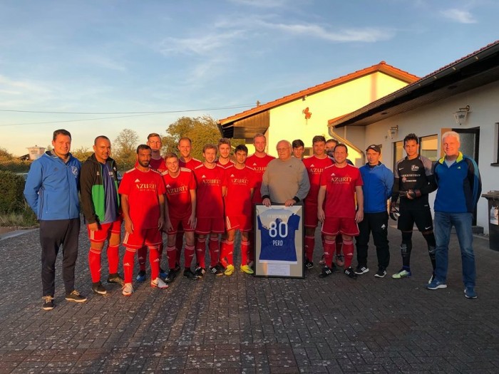 Auch abseits des Platzes gab es beim FVB Grund zu feiern, feierte doch Günter Müller, im Bliestal allgemein bekannt als "Es Perd", sein 80tes Wiegenfest: "Unsere aktiven Fußballer (1. und 2. Mannschaft) hatten sich für unseren Ehrenpräsidenten anlässlich seines 80. Geburtstages etwas besonderes überlegt. Vor dem Pokalspiel am gestrigen abend wurde Günter Müller ein eingerahmtes signiertes Trikot des FVB mit der Rückennummer 80 und dem Namen “Perd“ übergeben.", heißt es auf der Facebookseite des Vereins. "Lieber Günter, nochmal alles Gute, viel Gesundheit und auf viele weitere Jahre beim FVB.", heißt es weiter. Das Team von SCB-Online schließt sich den Glückwünschen an das Biesinger Urgestein an.